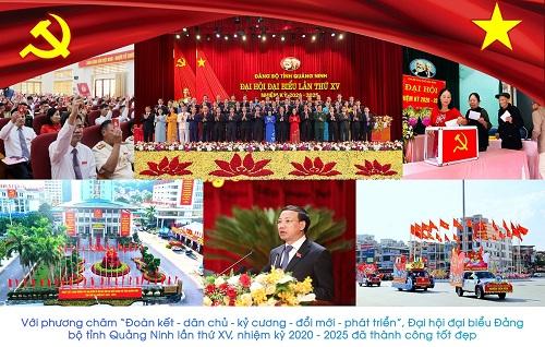 Với phương châm “Đoàn kết - dân chủ - kỷ cương - đổi mới - phát triển”, Đại hội đại biểu Đảng bộ tỉnh Quảng Ninh lần thứ XV, nhiệm kỳ 2020 - 2025 được tiến hành từ ngày 25/9 đến ngày 27/9/2020 tại Trung tâm Tổ chức hội nghị tỉnh và đã thành công tốt đẹp. Về dự đại hội có 350 đại biểu ưu tú, tiêu biểu cho trí tuệ, bản lĩnh chính trị, ý chí và sức mạnh đoàn kết, đến từ 20 đảng bộ trực thuộc, đại diện cho hơn 102.500 đảng viên trong toàn Đảng bộ tỉnh. Đại hội đã xác định mục tiêu tổng quát của giai đoạn 2020 - 2025 là “Tăng cường xây dựng, chỉnh đốn Đảng và hệ thống chính trị trong sạch, vững mạnh; phát huy đoàn kết, dân chủ, kỷ cương, đổi mới sáng tạo; huy động sức mạnh tổng hợp thúc đẩy phát triển kinh tế - xã hội nhanh, bền vững, nâng cao đời sống mọi mặt của Nhân dân; bảo đảm vững chắc quốc phòng - an ninh; xây dựng Quảng Ninh trở thành tỉnh dịch vụ, công nghiệp hiện đại, là một trong những trung tâm phát triển năng động, toàn diện của phía Bắc”, tăng trưởng GRDP bình quân của cả giai đoạn trên 10%, GRDP bình quân đầu người đến năm 2025 đạt trên 10.000 USD; trong tầm nhìn đến năm 2030, xây dựng, phát triển Quảng Ninh là tỉnh kiểu mẫu giàu đẹp, văn minh, hiện đại; là một trong những trung tâm phát triển năng động, toàn diện, trung tâm du lịch quốc tế, trung tâm kinh tế biển, cửa ngõ của Vùng kinh tế trọng điểm Bắc Bộ và cả nước, đô thị phát triển bền vững theo mô hình tăng trưởng xanh, thích ứng với biến đổi khí hậu, GRDP bình quân đầu người trên 15.000 USD; khu vực phòng thủ tỉnh vững chắc về quốc phòng - an ninh và phòng tuyến hợp tác, cạnh tranh kinh tế quốc tế.