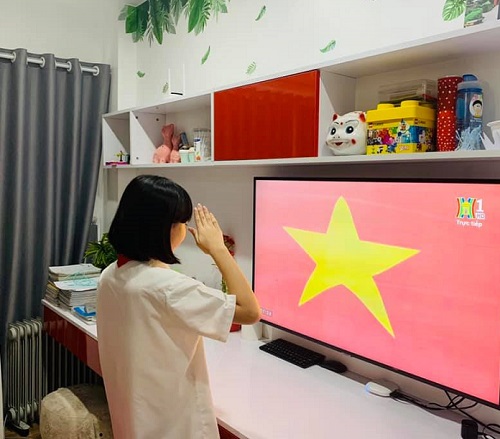 Chị Nguyễn Thị Hòa (Phú Thượng, Tây Hồ) chia sẻ, mấy hôm nay các bạn nhỏ nhà chị đã háo hức chờ đón lễ khai giảng. Mặc dù năm nay chỉ được gặp thầy cô và bạn bè qua màn hình máy tính nhưng các con vẫn rất chờ đón. “Ngay từ sáng sớm các con đã thức dậy chuẩn bị quần áo và nghiêm túc thực hiện nghi lễ chào cờ và theo dõi các hoạt động của lễ khai giảng… Chỉ mong dịch bệnh chóng qua để các con sớm trở lại trường”, chị Hòa nói.