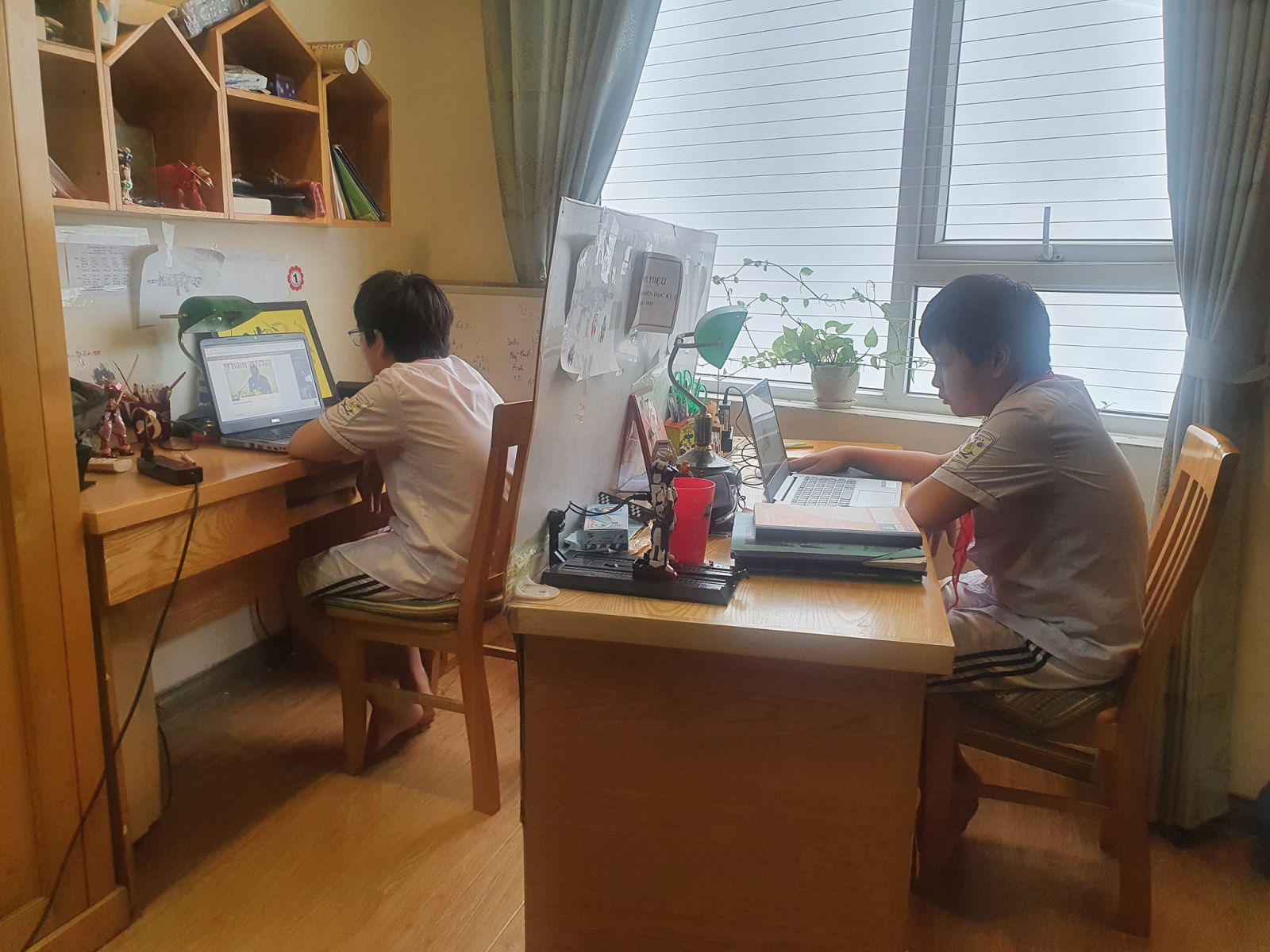 Hai anh em mỗi bạn một máy tính dự lễ khai giảng (Ảnh: @Hoangyen)