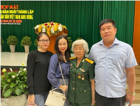 Bà Lê Thị Thu Nguyệt đại diện Ban liên lạc Lữ đoàn 316 tặng hoa Đại tá Nguyễn Văn Tàu