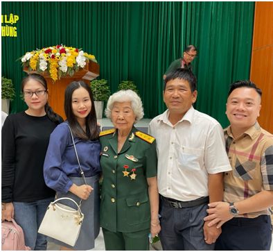 Đại tá Nguyễn Văn Tàu (Thứ 3 từ trái sang), Nhà báo Lý Mỹ Tiên (áo xanh dương) - Tạp chí Làng nghề Việt Nam, Thượng úy Nguyễn Thị Mỹ Nhung (Thứ 3 từ phải sang), ông Nguyễn Văn Thông (ngoài cùng bên phải); Phóng viên Thúy Trâm - Tạp chí Làng nghề Việt Nam (ngoài cùng bên trái)