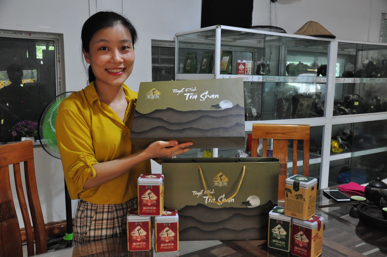 Chị Mai Nhung giới thiệu sản phẩm cao cấp chè hữu cơ Tân Bắc (Quang Bình).