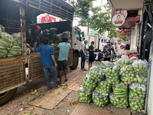 Rau củ quả được Thầy Thích Huệ Phát thu mua tại nhiều tỉnh và điều phối lên TP. HCM tập kết tại Công ty Mắm Bà Thạo