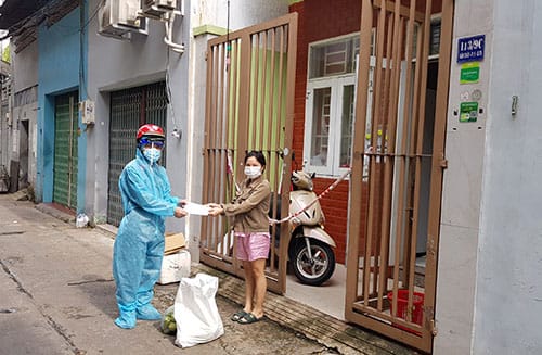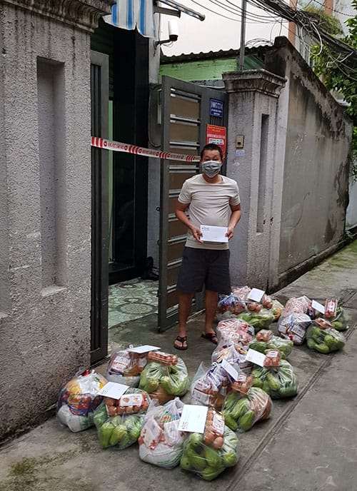 Chị Nguyễn Thị Thanh Bình – Chủ tịch Uỷ ban Mặt trận Tổ quốc phường 11 bày tỏ sự vui mừng và gửi lời cảm ơn sâu sắc với Thầy Thích Huệ Phát, VPĐD MN – Tạp chí Làng nghề Việt Nam, anh Trần Chấn Thiên và các nhà hảo tâm đã ủng hộ cho người dân khó khăn tại phường. Có thể nói, đây là sự giúp đỡ rất kịp thời, vô cùng thiết thực trong giai đoạn này. Đồng thời, chị Bình cho biết thêm, những phần quà và rau củ sẽ được phường trao tận tay cho các hộ F0 và thuê trọ khó khăn. Riêng những hộ khó khăn nhất, phường sẽ gửi thêm một số thực phẩm thiết yếu khác.