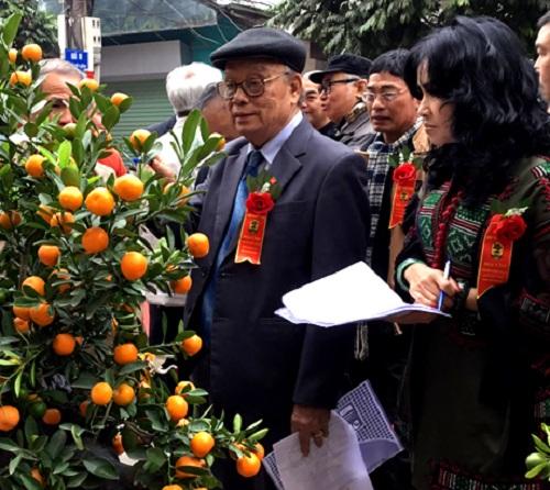 Ông Lưu Duy Dần, Chủ tịch Hiệp hội làng nghề Việt Nam cùng các giám khảo chấm giải cho các sản phẩm quất dự thi