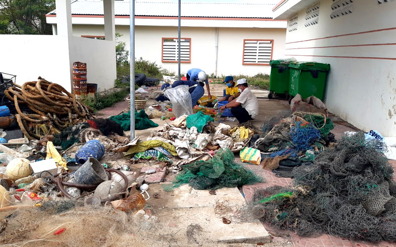 Rác thải từ biển được ngư dân cảng Dân Phước, thị xã Sông cầu, tỉnh Phú Yên thu gom về nơi chứa rác của cảng để phân loại và xử lý.