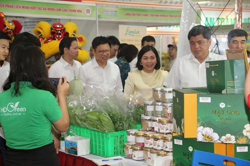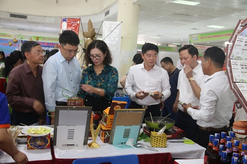 Lãnh đạo Bộ Nông nghiệp và PTNT tham quan gian hàng các tỉnh