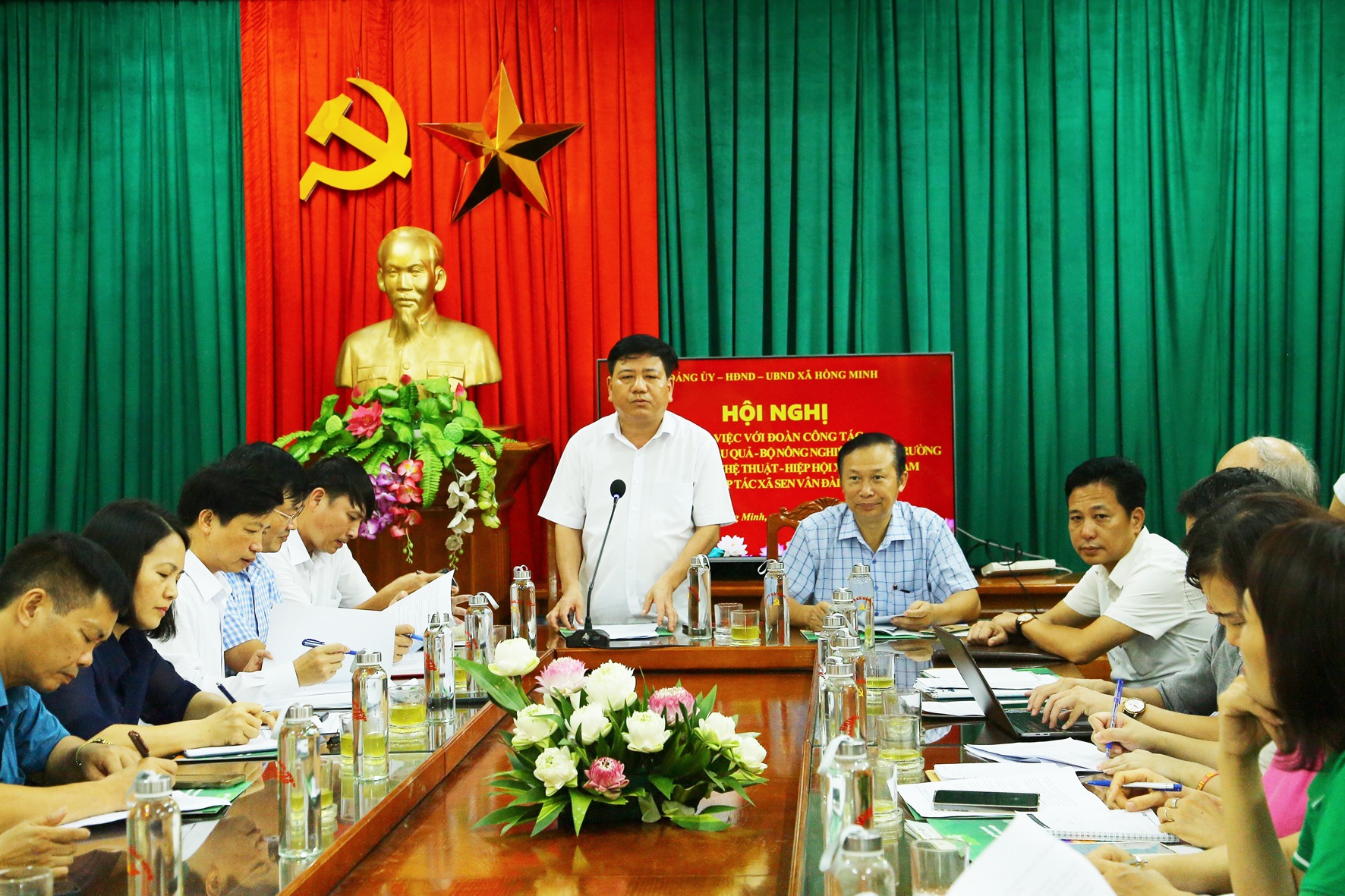 Về phía địa phương có đồng chí Trần Minh Tuấn – Bí thư Đảng ủy, Chủ tịch HĐND xã Hồng Minh, các đồng chí trong Ban Thường vụ Đảng ủy, đại diện các HTX hoa sen Vân Đài, HTX dược liệu Vân Đài, HTX dịch vụ nông nghiệp xã Chí Hòa và 1 số chủ trang trại Nông nghiệp xã Hồng Minh.