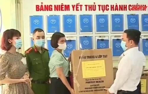 Anh Đỗ Minh Hoà trao tặng khẩu trang cho Cán bộ và nhân dân phường Ngọc Hà.