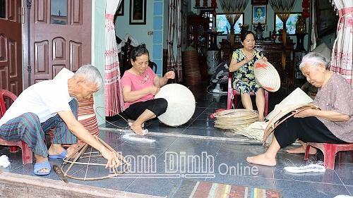 Nghề sản xuất nón lá truyền thống ở thôn Đào Khê Hạ, xã Nghĩa Châu. (Ảnh: Báo Nam Định)