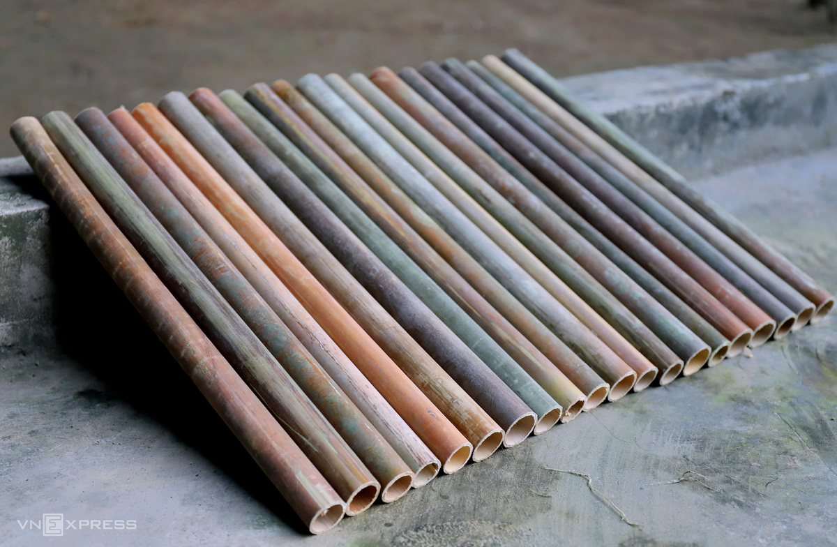 Cây nứa cao khoảng 7 m, được mua về với giá 6.000-7.000 đồng/cây. Người dân cưa cây rứa ra thành nhiều khúc, mỗi khúc dài 60 cm để chẻ ra vót mỏng làm nan đan rổ, rá, mẹt và sàng.