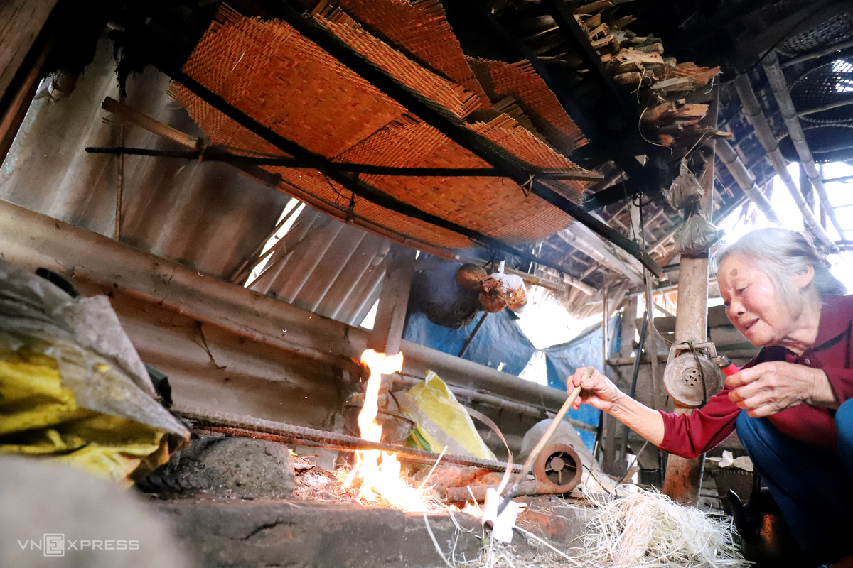 "Phên gác bếp càng lâu càng tốt, sẽ tạo nên sự chắc chắn cho chiếc thúng sau khi ra thành phẩm", bà Nguyễn Thị Lan (70 tuổi, vợ ông Sơn), nói.
