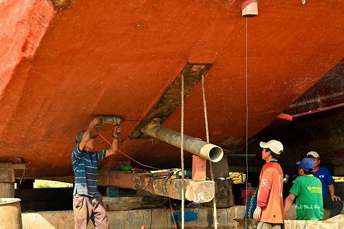 Người nào việc nấy, những người thợ làm nghề tất bật với công việc của mình với nhiều công đoạn như: Đục hào, chà nhám, kéo ghe, cạo, rửa, xảm, trét keo làm nước, rồi sơn phết, trang trí cho tàu thuyền để những con tàu nhanh chóng hạ thủy… Nhưng tất cả thợ thầy ở đây đều học việc rồi làm nghề theo kiểu “cha truyền con nối”, chứ không hề có bằng cấp chuyên môn. Việc đóng mới và tu bổ tàu thuyền là nhu cầu của người dân vùng biển, tùy theo yêu cầu của chủ thuyền mà họ đại tu hay sửa chữa nhỏ.