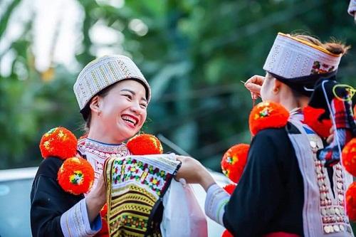 Có lẽ vì thế, mà những ngày giáp Tết, các bản làng người Dao luôn rộn ràng hơn bởi những đoàn khách du lịch ghé thăm. Thấp thoáng hai bên đường bê tông phẳng lì là nếp nhà của đồng bào Dao nổi bật bởi những bộ trang phục truyền thống sặc sỡ được treo ngay ngắn trước hiên nhà. Mỗi thềm nhà, bậc cửa đều có bóng dáng những người phụ nữ Dao đỏ khéo léo đưa từng đường kim mũi chỉ.