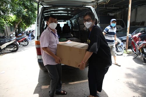 Là một trong những nơi có nhiều điểm bị phong toả nhất quận 7 (TP. HCM), bà con sống tại các hẻm ở đường Bùi Văn Ba, phường Tân Thuận Đông cũng đang gặp khó khăn vì tình hình dịch này. Nhận thấy điều đó, nhóm thiện nguyện “MC Ngọc Khánh, người mẫu Gabby Nguyễn và anh Thanh Điền” đã gửi những phần thực phẩm hỗ trợ và nhờ VPMN – Tạp chí Làng nghề Việt Nam đại diện đưa đến phường Tân Thuận Đông, quận 7, TP.HCM.