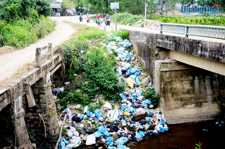 Rác thải ùn ứ dưới chân cầu Bàng Thang, xã Tịnh Giang (Sơn Tịnh).
