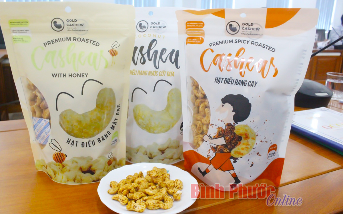 3 sản phẩm đánh giá OCOP của Công ty TNHH Hạt Điều Vàng (Ảnh: Báo Bình Phước Online)