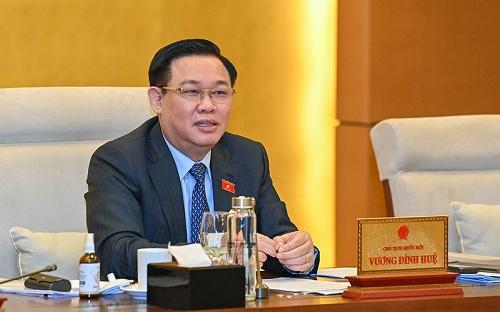 Chủ tịch Quốc hội Vương Đình Huệ phát biểu cho ý kiến vào nội dung phiên họp. (Ảnh: Duy Linh)