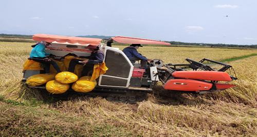 Nhiều nông dân đã sử dụng máy gặt đập liên hợp trong thu hoạch lúa ĐX để tránh tập trung đông người