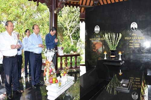 Thủ tướng Nguyễn Xuân Phúc đã tới dâng hương, tưởng nhớ Luật sư Nguyễn Hữu Thọ, nguyên Quyền Chủ tịch nước, nguyên Chủ tịch Quốc hội, nguyên Phó Chủ tịch Hội đồng Nhà nước.