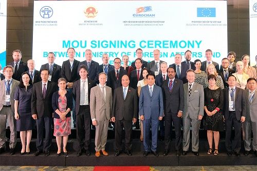 Thủ tướng Nguyễn Xuân Phúc chứng kiến Lễ ký kết hợp tác giữa Bộ Ngoại giao và EuroCham - Ảnh: VGP/Quang Hiếu