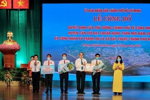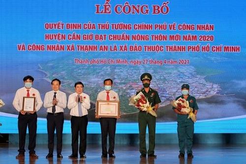 Phát biểu tại buổi lễ, bày tỏ vui mừng khi huyện Cần Giờ được Thủ tướng Chính phủ công nhận đạt chuẩn NTM năm 2020 và công nhận xã Thạnh An là xã đảo thuộc TP Hồ Chí Minh, ông Nguyễn Thành Phong, Chủ tịch UBND TP Hồ Chí Minh khẳng định, đây là sự kiện quan trọng, đánh dấu bước phát triển của huyện Cần Giờ, mở ra nhiều cơ hội để thúc đẩy phát triển kinh tế trong thời gian tới.