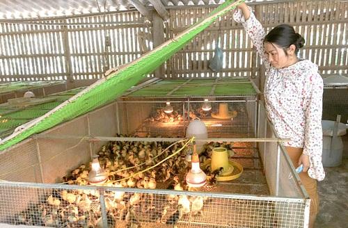Chị Vân kiểm tra khu úm vịt con.